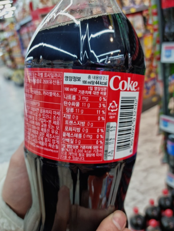 음료에도 수없이 많은 종류가 있습니다. 음료에는 생각보다 당류가 많이 들어가곤 하는데요. 예를 들어 콜라 1.25L 페트병에는 당류가 11g이 들어간다고 표시되어 있습니다. 하지만 역시나 100ml당입니다. 총 1.25L이기 때문에 당류는 총 137.5g입니다. 이 양은 각설탕 55개를 의미합니다. 콜라를 한 잔 가득 마신다면 여러분은 18개 이상의 각설탕을 먹는 것과 같습니다. 당뇨나 혈당 관리가 필요한 분들은 주의하여 드셔야 합니다. 영양 성분으로 다른 것은 몰라도 탄수화물, 지방, 당 함량만 보아도 식습관을 개선하고 건강을 지킬 수 있습니다.