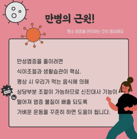 이번 글은 우리 건강과 아주 밀접한 연관이 있는 만성 염증을 다스리는 방법에 대해서 말씀을 드렸는데 조금이나마 참고가 되기를 바랍니다. 이만 줄이겠습니다. 감사합니다.